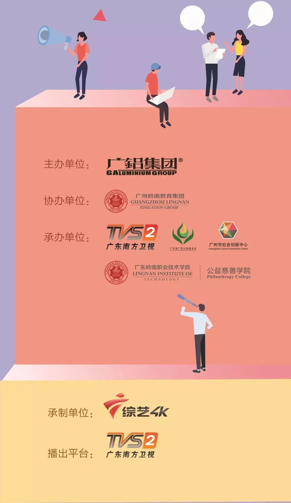 由廣鋁集團(tuán)有限公司主辦,廣州嶺南教育集團(tuán)協(xié)辦,廣東廣播電視臺(tái)南方衛(wèi)視、廣東省廣鋁公益基金會(huì)、廣東嶺南職業(yè)技術(shù)學(xué)院公益慈善學(xué)院、廣州市社會(huì)創(chuàng)新中心承辦,廣東廣播電視臺(tái)綜藝4K頻道承制的《鋁行愛 動(dòng)起來“廣鋁杯”2019廣東省青年公益創(chuàng)新資助行動(dòng)》活動(dòng)正在熱烈進(jìn)行中。