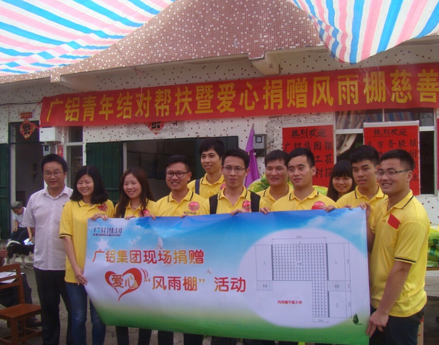 急老人們所急,這一天,40位廣鋁青年帶來(lái)了大米和食用油等生活必需品,還承諾為老人們搭建一個(gè)新的愛(ài)心風(fēng)雨棚。廣鋁青年人現(xiàn)場(chǎng)為老人們展示了風(fēng)雨棚平面大樣:玲瓏新村里兩排相向的住房住著50多位高齡麻風(fēng)病患者,其中一側(cè)連著廚房,新的風(fēng)雨棚將覆蓋住房之間的空地并延伸到廚房門(mén)口,為老人們遮擋烈日和風(fēng)雨。