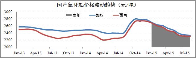 發(fā)稿時間:2015-08-22國產(chǎn)價格繼續(xù)下浮。報告期內(nèi),國產(chǎn)氧化鋁價格仍維持繼續(xù)下滑的基本趨勢,但整體降幅有所收窄。截至8月19日,國產(chǎn)日均價為2,325元/噸,月化同比下浮2.2%。其中,西南地區(qū)報價2,285元/噸,月化同比下浮0.9%;貴州報價2,285元/噸,月化同比下浮1.7%。目前,國產(chǎn)氧化鋁價格上浮機制尚未形成,預(yù)計第三季度氧化鋁價格將維持在2,250-2,450元/噸的均衡水平。