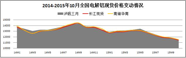 受全球鋁市疲態(tài)的影響,報(bào)告期內(nèi)我國(guó)鋁棒價(jià)格呈現(xiàn)出階段性大跌的異?,F(xiàn)象。截至10月中旬,廣東6063型鋁棒價(jià)格下浮至10995元/噸,月化環(huán)比下降11.1%。鋁棒價(jià)格大幅下浮的另外一個(gè)主要原因是鋁型材市場(chǎng)需求在原本疲憊的環(huán)境下,原料需求進(jìn)入季節(jié)性淡季。