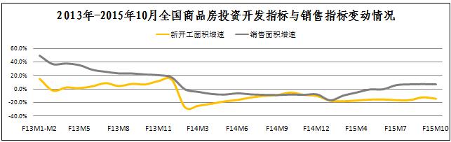 發(fā)稿時(shí)間:2015-11-20全國(guó)市場(chǎng)方面:國(guó)家統(tǒng)計(jì)局?jǐn)?shù)據(jù),10月份全國(guó)商品房新開(kāi)工面積累計(jì)同比降幅為-14.7%,跌幅環(huán)比擴(kuò)大2.1個(gè)百分點(diǎn),銷(xiāo)售面積累計(jì)同比增速為7.2個(gè)百分點(diǎn),增幅環(huán)比下跌0.3個(gè)百分點(diǎn)。10月份全國(guó)房地產(chǎn)投資開(kāi)發(fā)指標(biāo)與銷(xiāo)售指標(biāo)表現(xiàn)不佳,拖累國(guó)房景氣指數(shù)連續(xù)兩個(gè)月下跌,其中10月份國(guó)房景氣指數(shù)為93.34,較9月份下跌了0.06點(diǎn)。