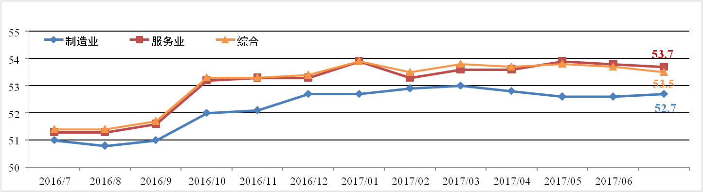 HIS Markit與摩根大通發(fā)布的全球PMI數(shù)據(jù)顯示,7月全球綜合PMI為 53.5%,較上月下降0.2個(gè)百分點(diǎn)。其中,全球制造業(yè)PMI為52.7%,較上月升 高0.1個(gè)百分點(diǎn);全球服務(wù)業(yè)PMI為53.7%,較上月下降0.1個(gè)百分點(diǎn)。