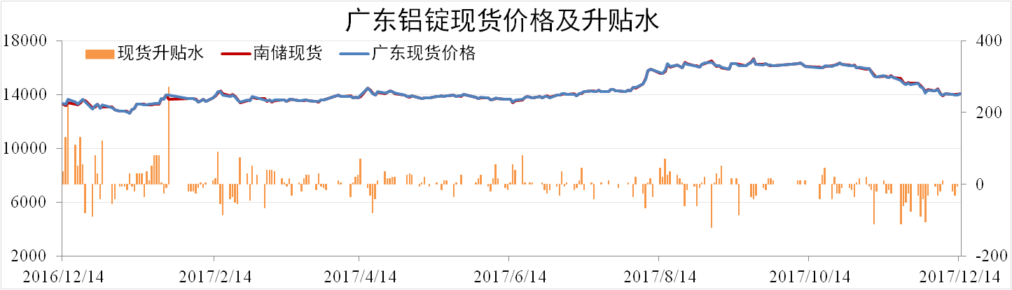 截至12月14日,南儲(chǔ)華南鋁錠現(xiàn)貨價(jià)報(bào)14,040元/噸,環(huán)比下跌8.53%,廣東現(xiàn)貨成交價(jià)報(bào)14,040元/噸,環(huán)比下跌8.38%。庫(kù)存方面,截至12月7日,全國(guó)庫(kù)存為169.53萬噸,環(huán)比上漲0.77%。
