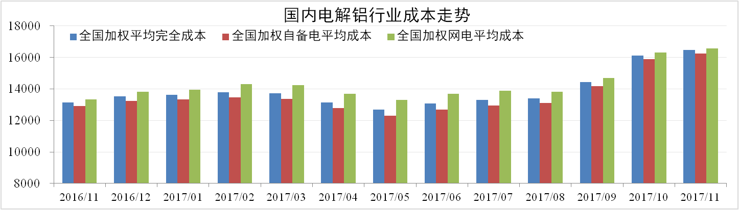 分析認(rèn)為:氧化鋁行業(yè)減產(chǎn)后市場(chǎng)仍需時(shí)間消化過剩庫(kù)存,氧化鋁價(jià)格將持續(xù)走弱。電解鋁實(shí)際減產(chǎn)不及預(yù)期,陽極供應(yīng)緊張價(jià)格堅(jiān)挺,另外部分地區(qū)燃煤供暖回歸,煤炭?jī)r(jià)格大漲,綜合來看預(yù)計(jì)12月電解鋁成本仍會(huì)上漲。