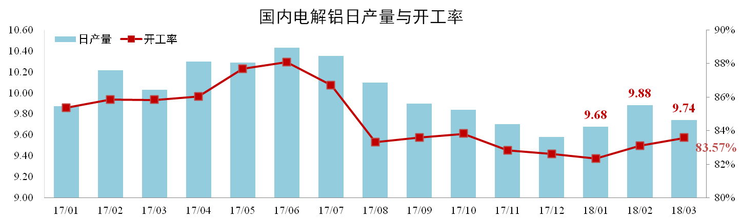 分析認為:基于復產和新投產需要周期,3月份產能沒有出現(xiàn)顯著增長,部分電解鋁企業(yè)檢修致使日產量有所下調。二季度隨著天氣轉暖、需求復蘇合規(guī)產能將加速投產復產,預計后期日產量及開工率將有所上升。