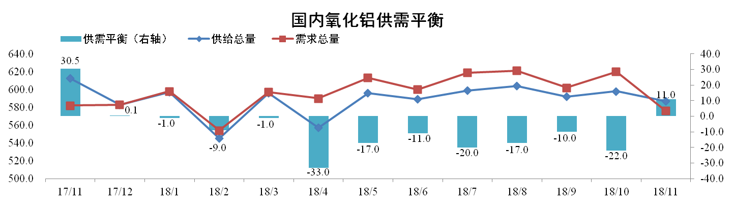 分析認(rèn)為:11月河南地區(qū)多個(gè)氧化鋁企業(yè)受采暖季影響進(jìn)行限產(chǎn),加之礦石價(jià)格居高不下,氧化鋁供給總量稍有下降。12月利潤驅(qū)使,會(huì)導(dǎo)致氧化鋁產(chǎn)量有所增加,而下游電解鋁企業(yè)需求疲軟,預(yù)計(jì)供給過剩。
