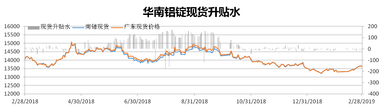 截至2月28日,南儲(chǔ)華南鋁錠現(xiàn)貨價(jià)報(bào)13462元/噸,環(huán)比上升0.56%,廣東現(xiàn)貨成交價(jià)報(bào)13458元/噸,環(huán)比上升0.58%。全國(guó)鋁錠庫(kù)存為126.3萬噸,環(huán)比下降7.27%。南海庫(kù)存為15.3萬噸,環(huán)比下降17.74%。