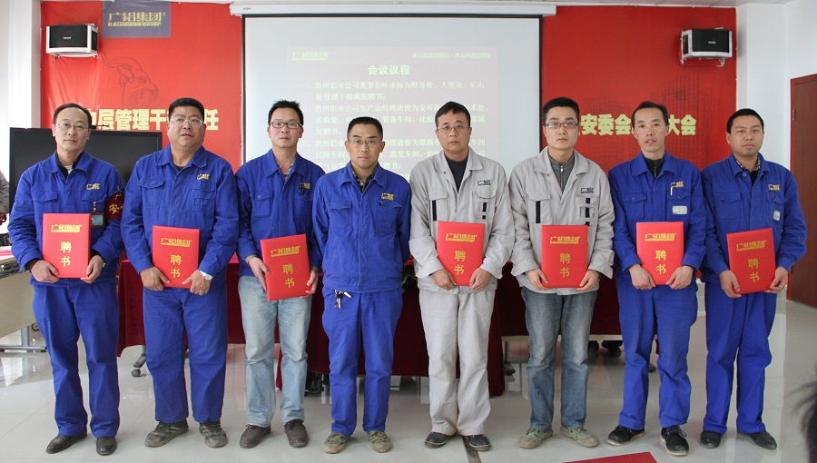 發(fā)稿時間:2015-01-152015年1月13日,貴州鋁業(yè)公司和貴州礦業(yè)公司2015年中層管理干部聘任大會暨安全環(huán)保責任人任命大會在貴州鋁業(yè)公司綜合辦公樓五樓會議室隆重舉行。公司董事長葉永標、礦業(yè)公司總經(jīng)理張戰(zhàn)旗以及生產(chǎn)總經(jīng)理唐俊分別為2015年度中層管理干部頒發(fā)了聘書。