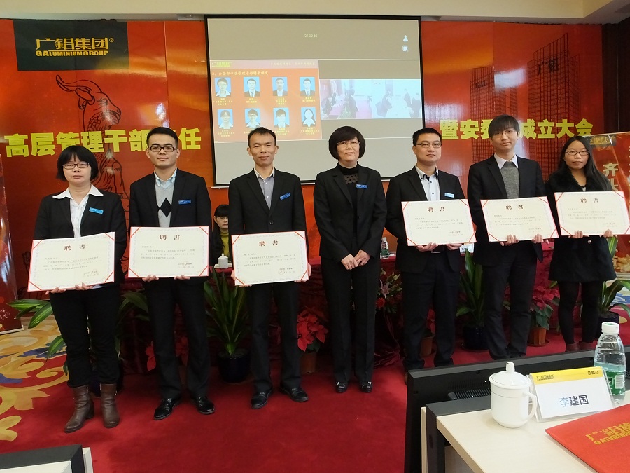 會(huì)議上,集團(tuán)公司高層領(lǐng)導(dǎo)對(duì)集團(tuán)本部15名中層管理干部及主持部門(mén)工作的助理級(jí)管理干部頒發(fā)了2015年度任職資格聘任證書(shū)。首先,由集團(tuán)董事、常務(wù)副總裁黃丹華為總裁辦中層管理干部頒發(fā)了聘書(shū);隨后,結(jié)算部總經(jīng)理助理李漢香為結(jié)算部中層管理干部頒發(fā)了聘書(shū);最后,董事會(huì)秘書(shū)長(zhǎng)、副總裁兼企管部總經(jīng)理曾麗娜為企管部中層管理干部及主持部門(mén)工作的助理級(jí)管理干部頒發(fā)了聘書(shū)。貴州鋁業(yè)公司、貴州礦業(yè)公司董事長(zhǎng)葉永標(biāo)代表為貴州鋁業(yè)公司財(cái)務(wù)處及人資處共2名管理干部頒發(fā)了聘書(shū)。