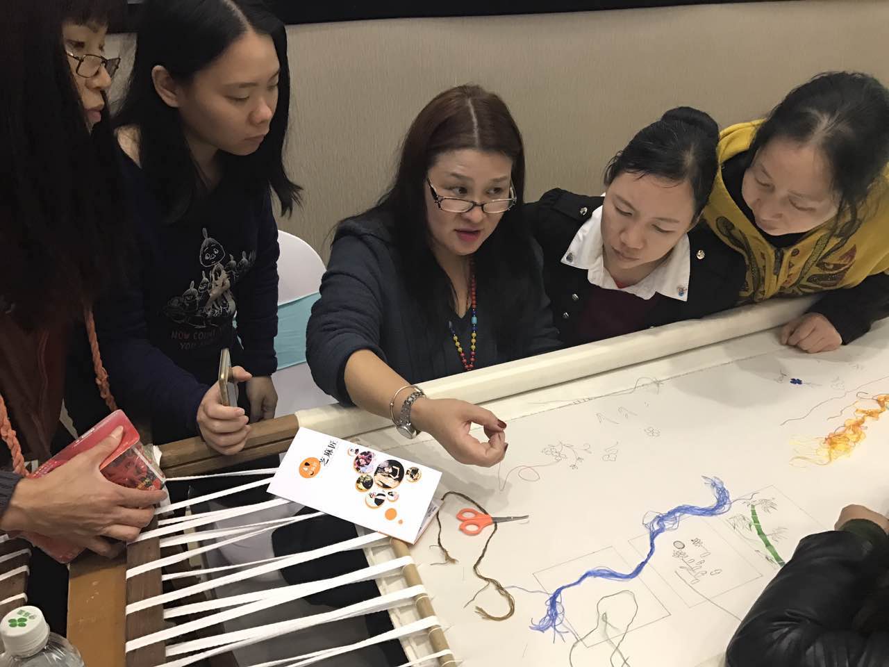 當(dāng)天,為了讓現(xiàn)場(chǎng)觀眾能更好地體驗(yàn)廣繡的美妙及加強(qiáng)現(xiàn)場(chǎng)互動(dòng)性,本次活動(dòng)特意組織了廣繡DIY體驗(yàn)等一系列親子活動(dòng)。雖然大部分觀眾都沒有刺繡基礎(chǔ),但依照底布上的各種花紋,花草、鳥魚、蝴蝶……一針一線,一邊聊天、聽音樂,一邊體驗(yàn)一件只屬于自己的刺繡美物從指尖誕生的快感!