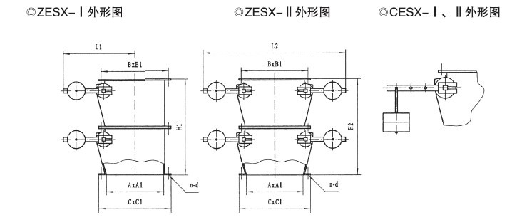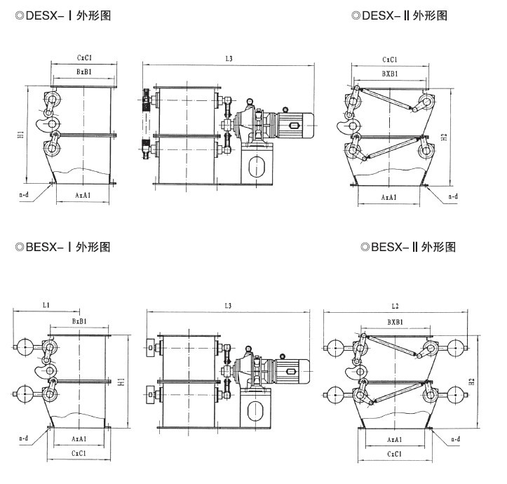 鎖氣翻板卸灰閥為上下交替開閉,自動復位機構。分為:z為重錘自動復位機構,具有運轉平穩(wěn)、節(jié)能,卸灰量大、小可調,卸灰、鎖氣可靠之功能。C為吊錘自動復位機構,具有占地面積省、節(jié)能,卸灰調節(jié)方便,卸灰、鎖氣可靠之功能。B為凸輪、連桿傳動,重量自動復位機構;D為凸輪、連桿傳動,彈簧自動復位機構,具有結構緊湊、設計合理、運轉平穩(wěn),卸灰、鎖氣可靠。是各種無粘度的固體粉料,小于Φ10mm的顆粒料,晶體料,團狀料,給、卸料工況的理想設備。Ⅰ型為單板卸料,Ⅱ型為雙板卸料。