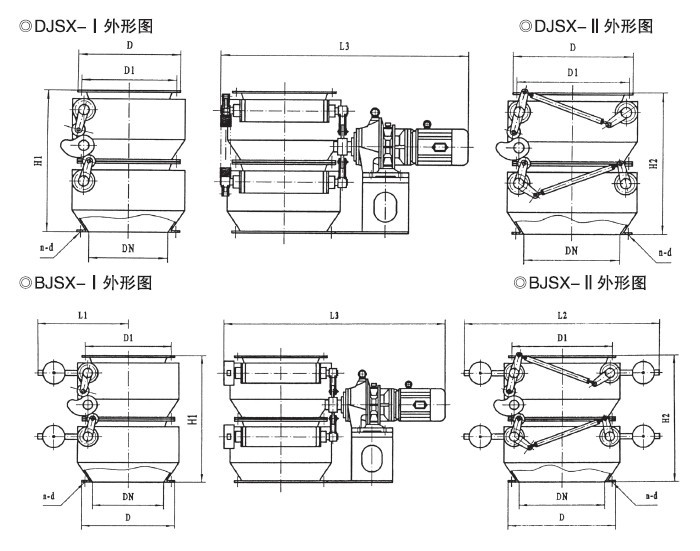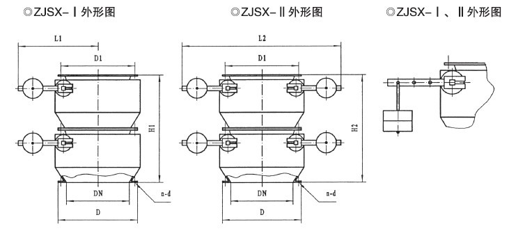 鎖氣翻板卸灰閥為上下交替開(kāi)閉,自動(dòng)復(fù)位機(jī)構(gòu)。分為:z為重錘自動(dòng)復(fù)位機(jī)構(gòu),具有運(yùn)轉(zhuǎn)平穩(wěn)、節(jié)能,卸灰量大、小可調(diào),卸灰、鎖氣可靠之功能。C為吊錘自動(dòng)復(fù)位機(jī)構(gòu),具有占地面積省、節(jié)能,卸灰調(diào)節(jié)方便,卸灰、鎖氣可靠之功能。B為凸輪、連桿傳動(dòng),重量自動(dòng)復(fù)位機(jī)構(gòu);D為凸輪連桿傳動(dòng),彈簧自動(dòng)復(fù)位機(jī)構(gòu),結(jié)構(gòu)緊湊、設(shè)計(jì)合理、運(yùn)轉(zhuǎn)平穩(wěn),卸灰、鎖氣可靠。是各種無(wú)粘度的固體粉料,小于Φ10mm的顆粒料,晶體料,團(tuán)狀料,給、卸料工況的理想設(shè)備。Ⅰ型為單板卸料,Ⅱ型為雙板卸料。