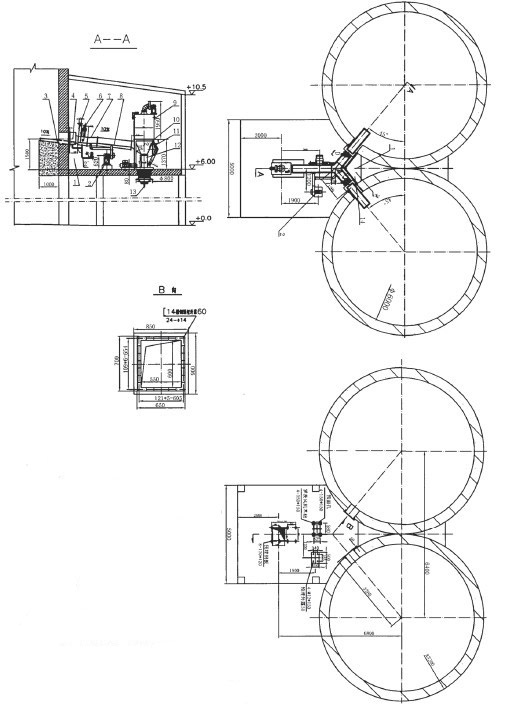 6、其不同直徑的均化庫,其三通槽角度不同,可由實際情況定。