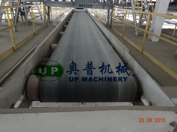 立式膠帶機(jī)的兩個(gè)擺動(dòng)極限位置設(shè)有限位開(kāi)關(guān),其在工作和非工作狀態(tài)下的定位由限位開(kāi)關(guān)來(lái)實(shí)現(xiàn)。特殊設(shè)計(jì)的溜槽能使水泥袋恰好落到接續(xù)膠帶機(jī)的中心位置。