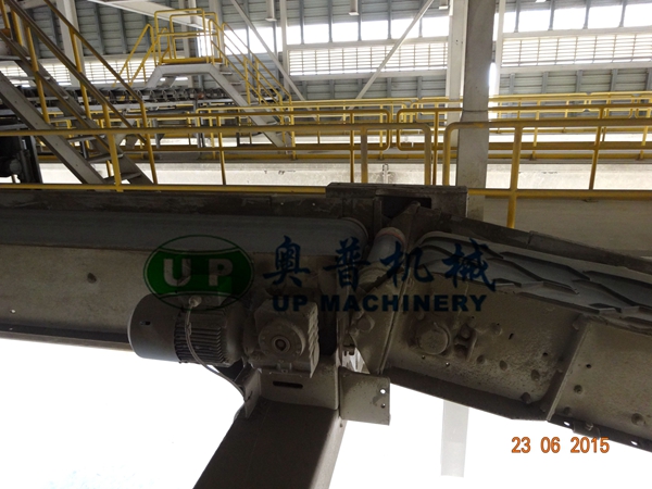 袋裝水泥汽車(chē)系統(tǒng)由平形膠帶機(jī)、卸袋機(jī)構(gòu)、端部溜槽、中間溜槽等組成。