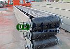 平形膠帶機(jī)的支架采用鋼板折彎結(jié)構(gòu),即美觀又牢固;驅(qū)動(dòng)裝置采用擺線針輪減速機(jī),節(jié)省占地面積;張緊方式為中間垂直螺旋張緊,卸袋機(jī)構(gòu)由旋臂立式膠帶機(jī)、電推桿和支架三部分組成,當(dāng)不需要水泥袋從中間位置卸下時(shí),立式膠帶機(jī)處于包裝膠帶機(jī)的側(cè)邊;當(dāng)需要水泥袋從中間位置卸下時(shí),由電動(dòng)推桿拉動(dòng)立式膠帶機(jī)使其擺動(dòng)與包裝膠帶機(jī)縱向成交叉位置,并開(kāi)動(dòng)立式膠帶機(jī)即可。